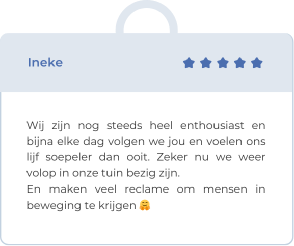Ik sta voor je klaar om je te helpen met jouw route, de oefeningen en meer. Ook word je lid van een fijne community.